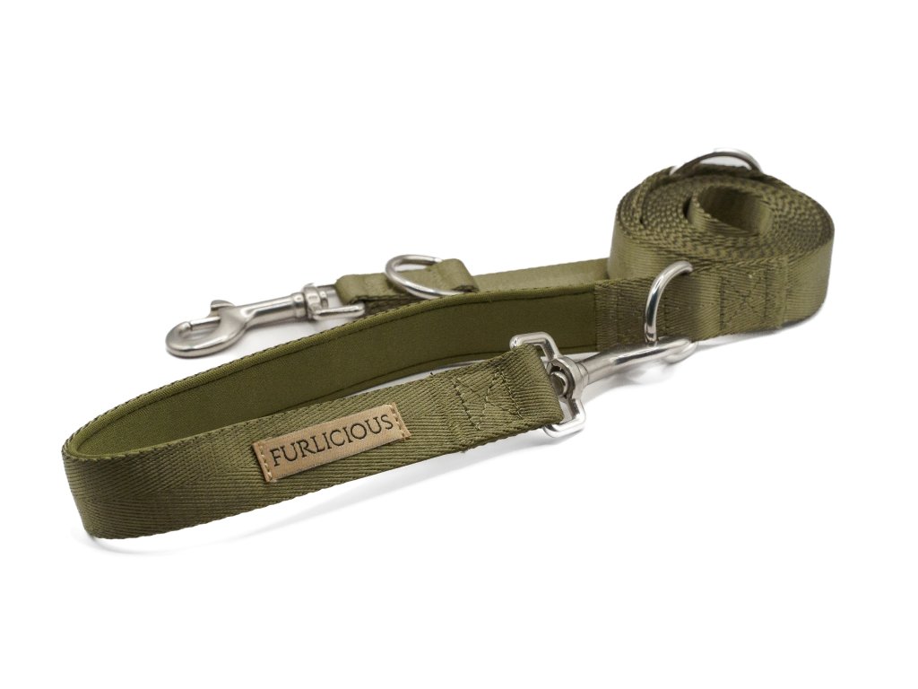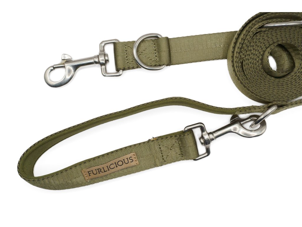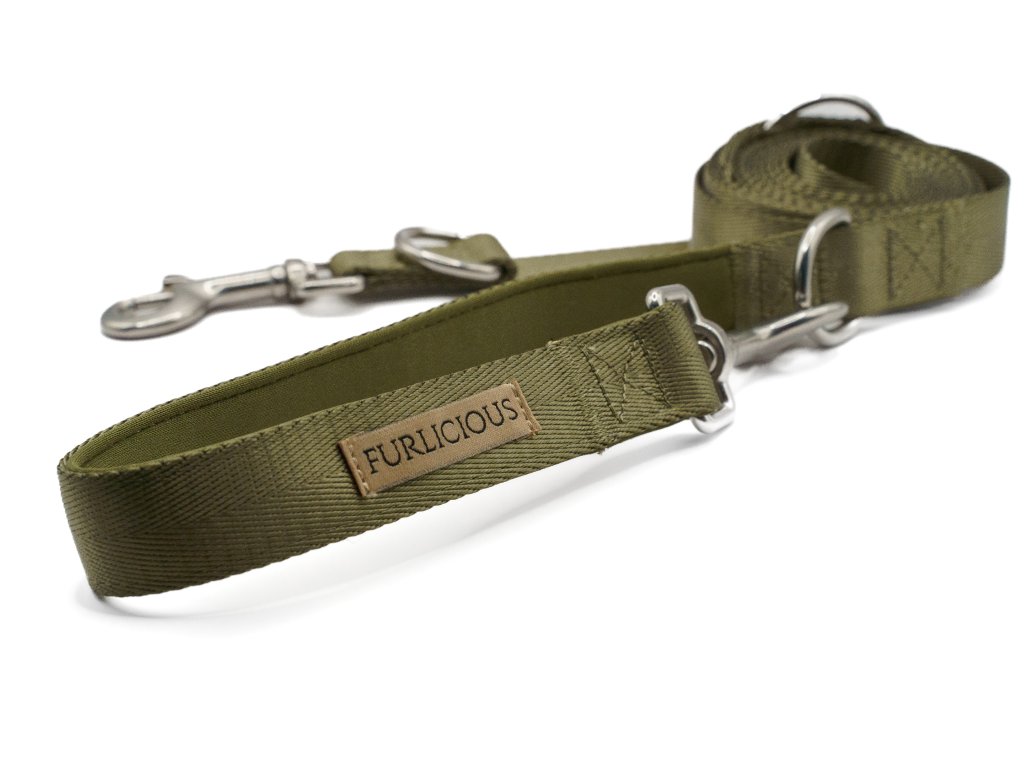 Nastavitelné přepínací vodítko tmavě zelené barvy s maximální délkou až 3 metry. Je možné ho jednoduše upravit na 3 různé úrovně nošení, pro maximální pohodlí vás i vašeho pejska.