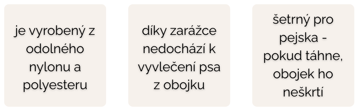 Polostahovací obojek typu martingale vyrobený z kvalitního nylonu. Je vhodný pro celodenní nošení, na procházky ve městě, nebo také řádění v přírodě. Po jednoduchém nasazení se obojek přizpůsobí obvodu psího krku, díky čemu umožňuje praktickou a bezpečnou kontrolu nad chováním pejska bez jakékoliv bolesti. Použité materiály nylon a polyester umožňují jednoduché čištění a údržbu obojku (stačí ho otřít vlhčeným hadříkem). Stříbrné kování je vyrobeno z nerezové oceli nebo zinku.