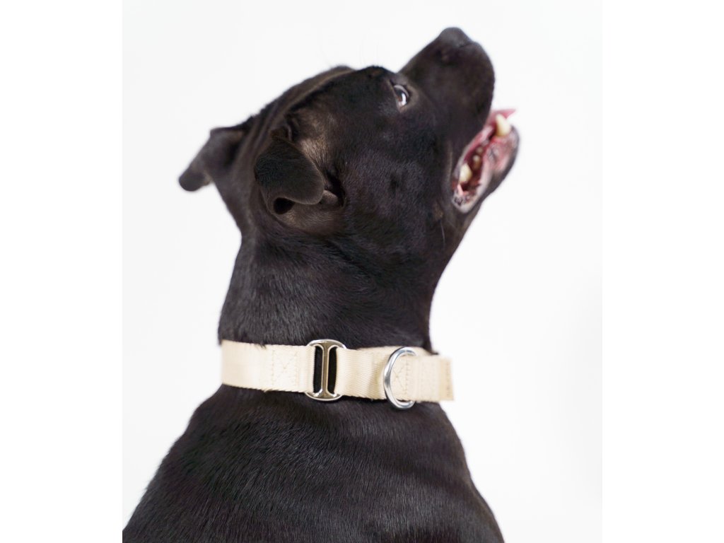 Polostahovací béžový obojek vyrobený z kvalitního nylonu. Je vhodný pro celodenní nošení, na procházky ve městě, nebo také řádění v přírodě.