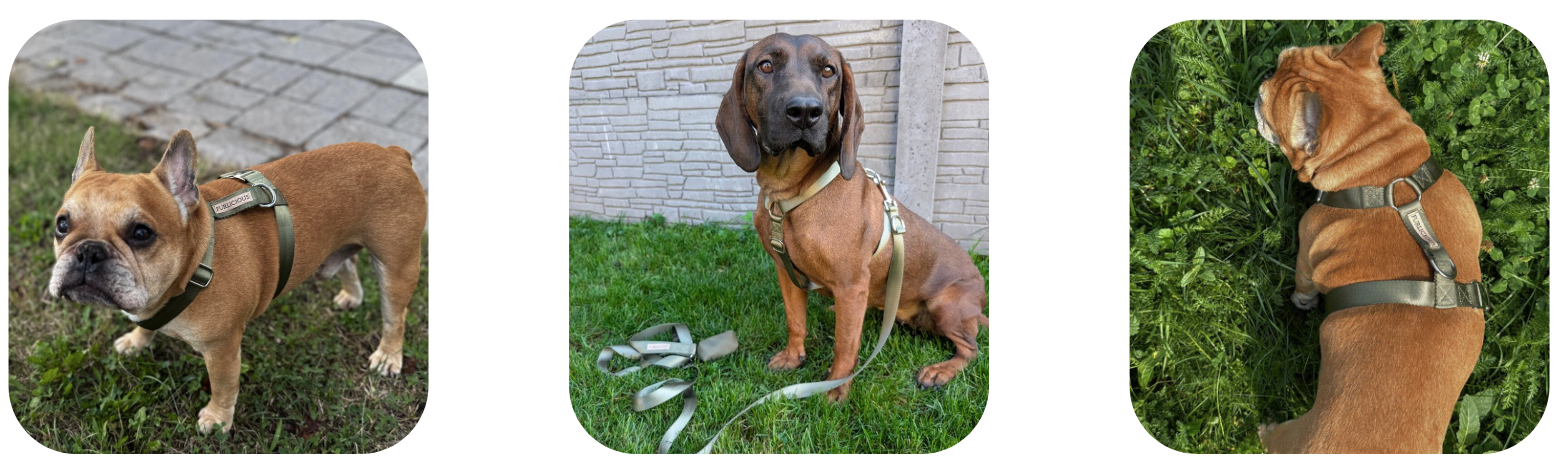 Stylový tmavě zelený H-postroj s nastavitelnými popruhy pro šetrný způsob vedení pejska. Rovnoměrně rozkládá psí tah a neomezuje pohyb jeho předních končetin.